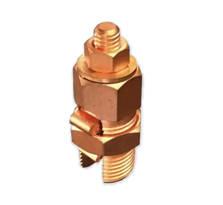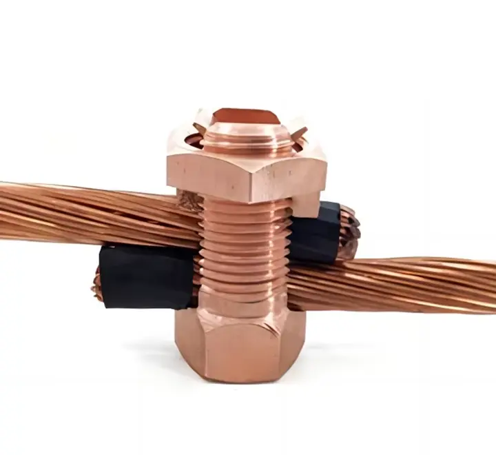 Conector mecánico de cobre diseñado para empalmes y derivaciones seguras en redes eléctricas y sistemas de protección a tierra.